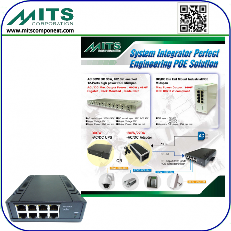 | Ports | 8 ports with PoE (7 PSE &1 PD or7 LTPoE++ PSE) Support auto-crossover & auto-polarity |